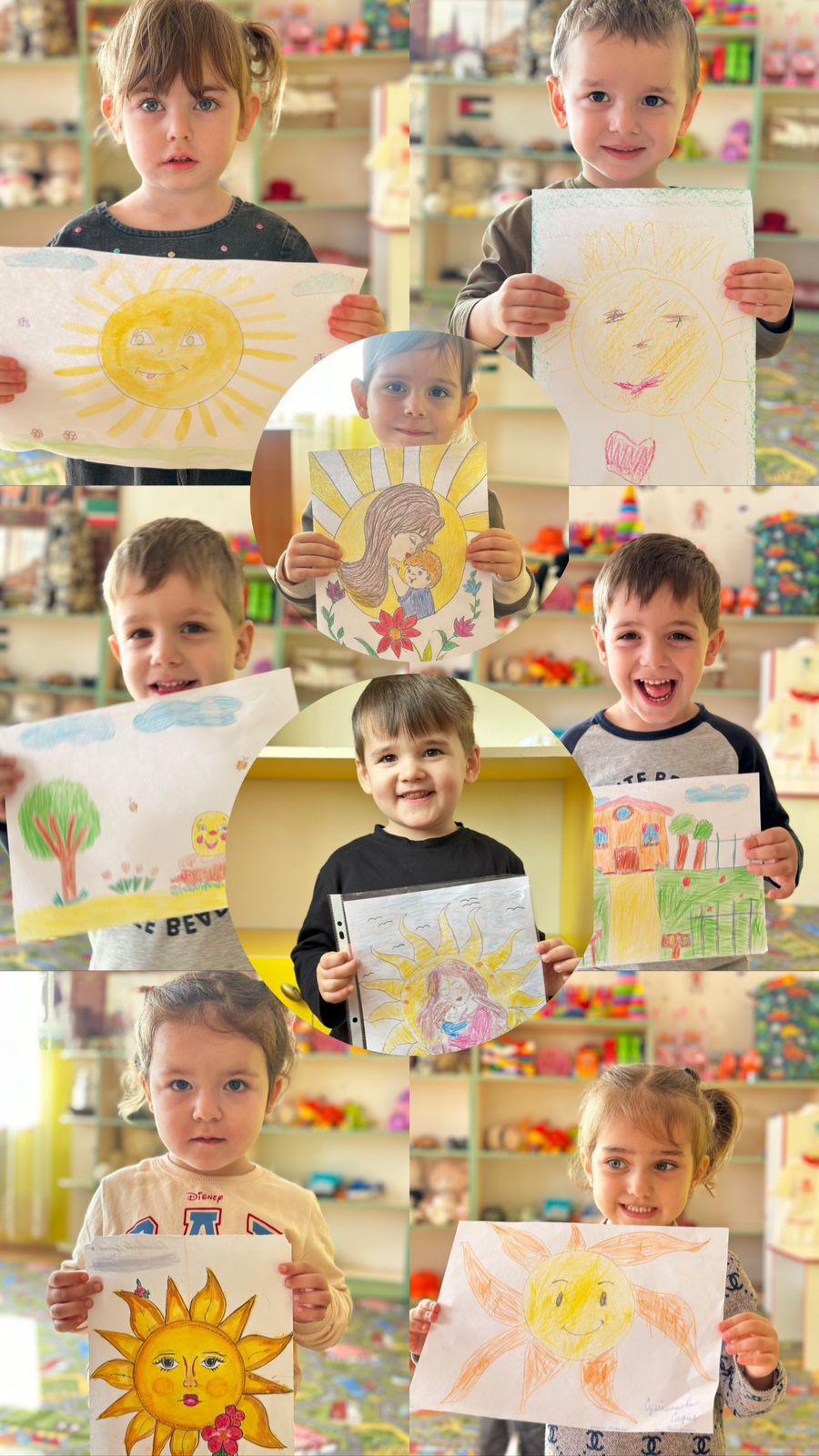 Конкурс детских рисунков «Мама, солнышко моё!» проходил в тёплой, доброжелательной атмосфере.В конкурсе приняли участие воспитанники всех возрастных групп детского сада.Дети с большим интересом и вдохновением создавали рисунки, посвящённые самым дорогим людям — своим мамам.В своих работах ребята изображали мам в разных ситуациях: вместе на прогулке, дома, за чтением книги, на кухне, в саду.Каждый рисунок отличался индивидуальностью, искренностью чувств и детской непосредственностью.Воспитатели провели предварительные беседы о семье и о маме, читали стихи, рассматривали иллюстрации, что помогло детям передать в рисунках нежность, заботу и любовь.Работы были размещены на выставке в группах и холле детского сада, что позволило всем посетителям и родителям насладиться детским творчеством.⸻Итоги конкурса:По результатам просмотра работ жюри определило победителей: