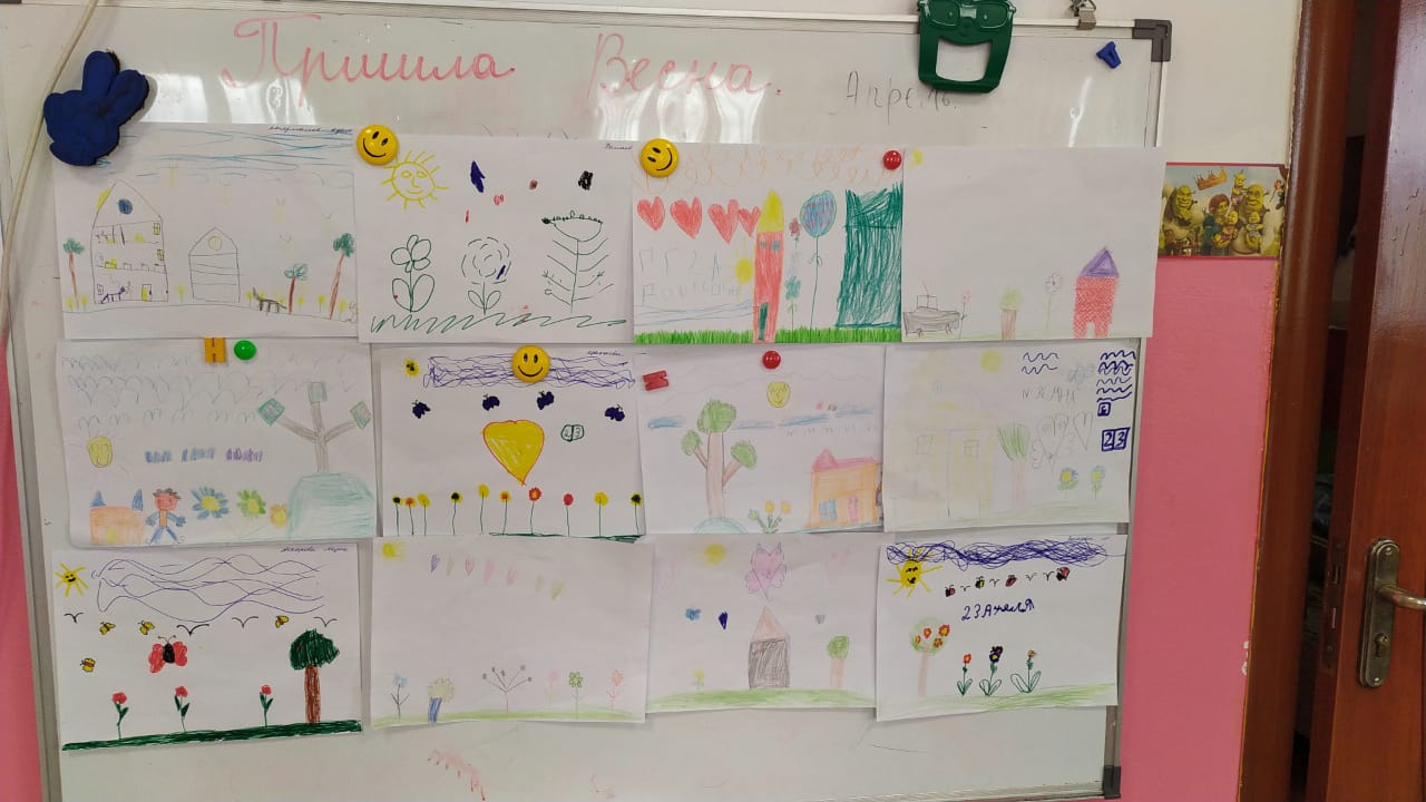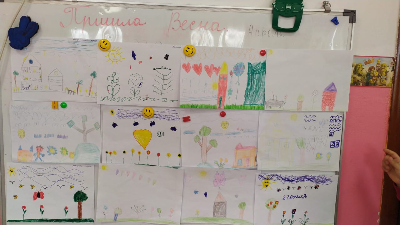 В своих работах дошкольники старались отразить всю красоту весенней природы. Тут можно было увидеть подснежники, солнечный день, грачей, ручейки и много другое.