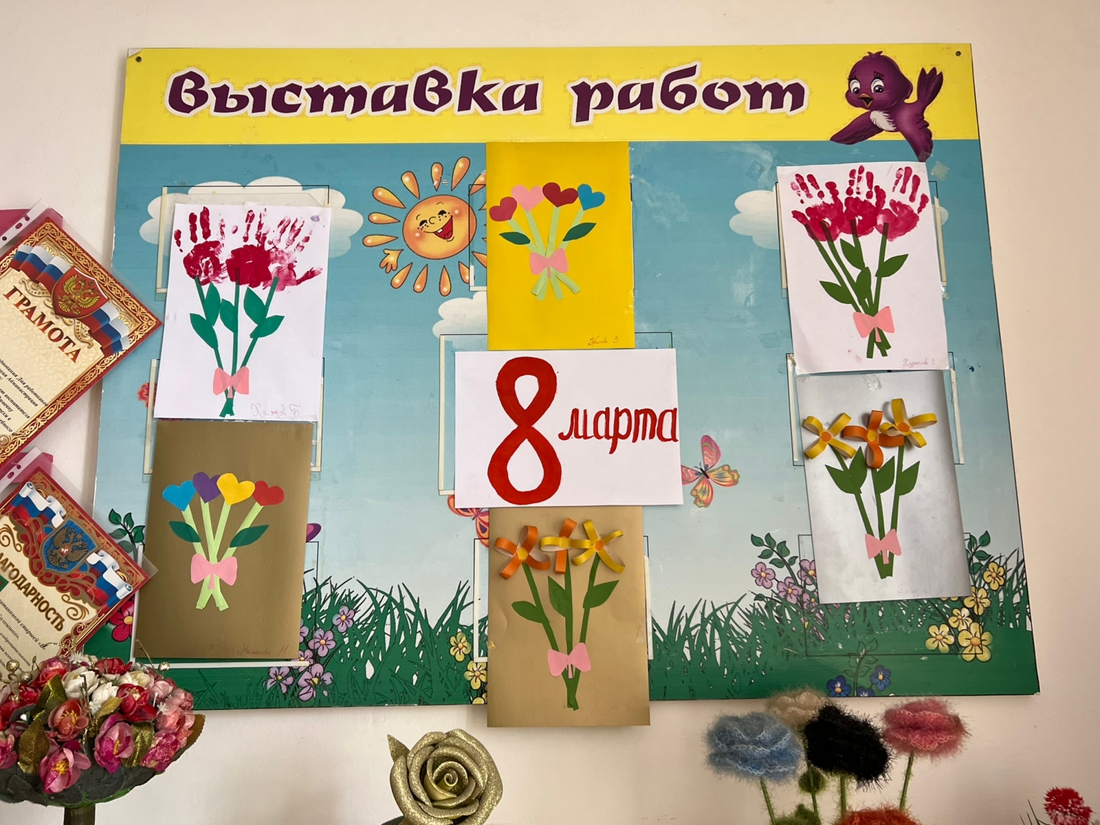 В старших и средних группах проведены занятия по рисованию изготовлению аппликаций – открыток для любимых мам и бабушек.