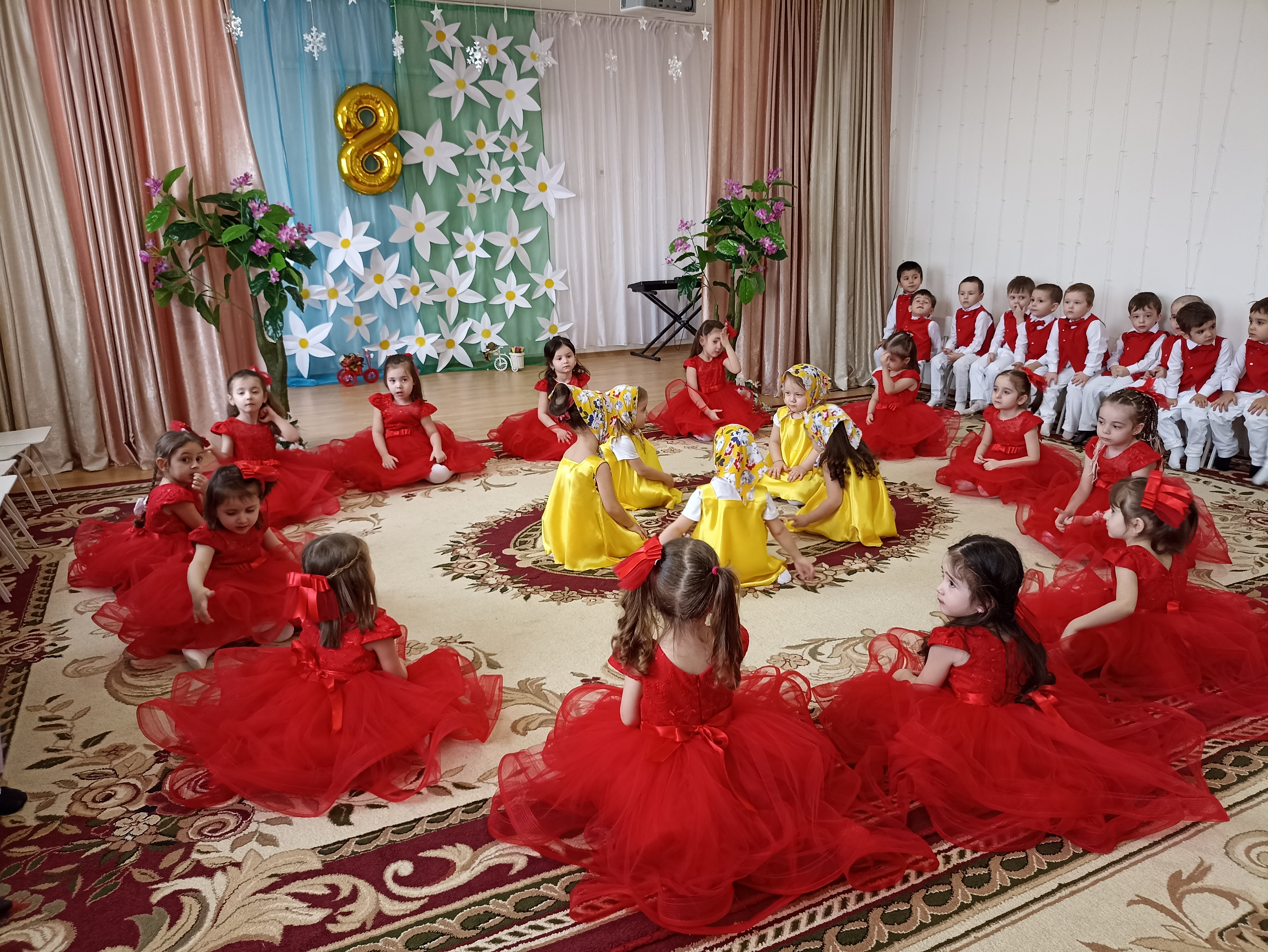Преддверие праздничных утренников во всех возрастных группах ДОУ воспитателями проводились тематические беседы с детьми, о том как они помогают мамам и бабушкам, а сколько они их любят, как ласково х мамы и бабушки называют, чему учат и т.д., (на русском и чеченском языках), чтение художественной литературы, сказок («Волк и семеро козлят», А. М. Горький «Воробьишко», «Сказка о глупом мышонке», С. Прокофьеф «Как зайчонок обидел свою маму» и др.) просмотр тематических сказок и мультфильмов («Сестрица Аленушка и братец Иванушка», «Мама для мамонтенка», «Энканто», «Гордая семья» др.)