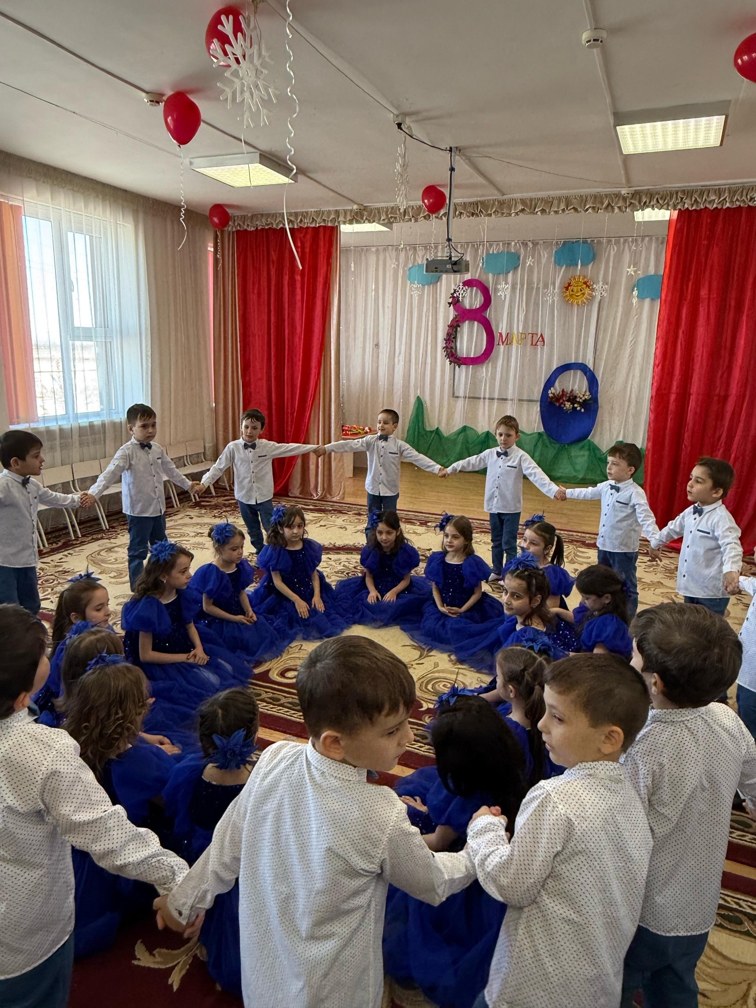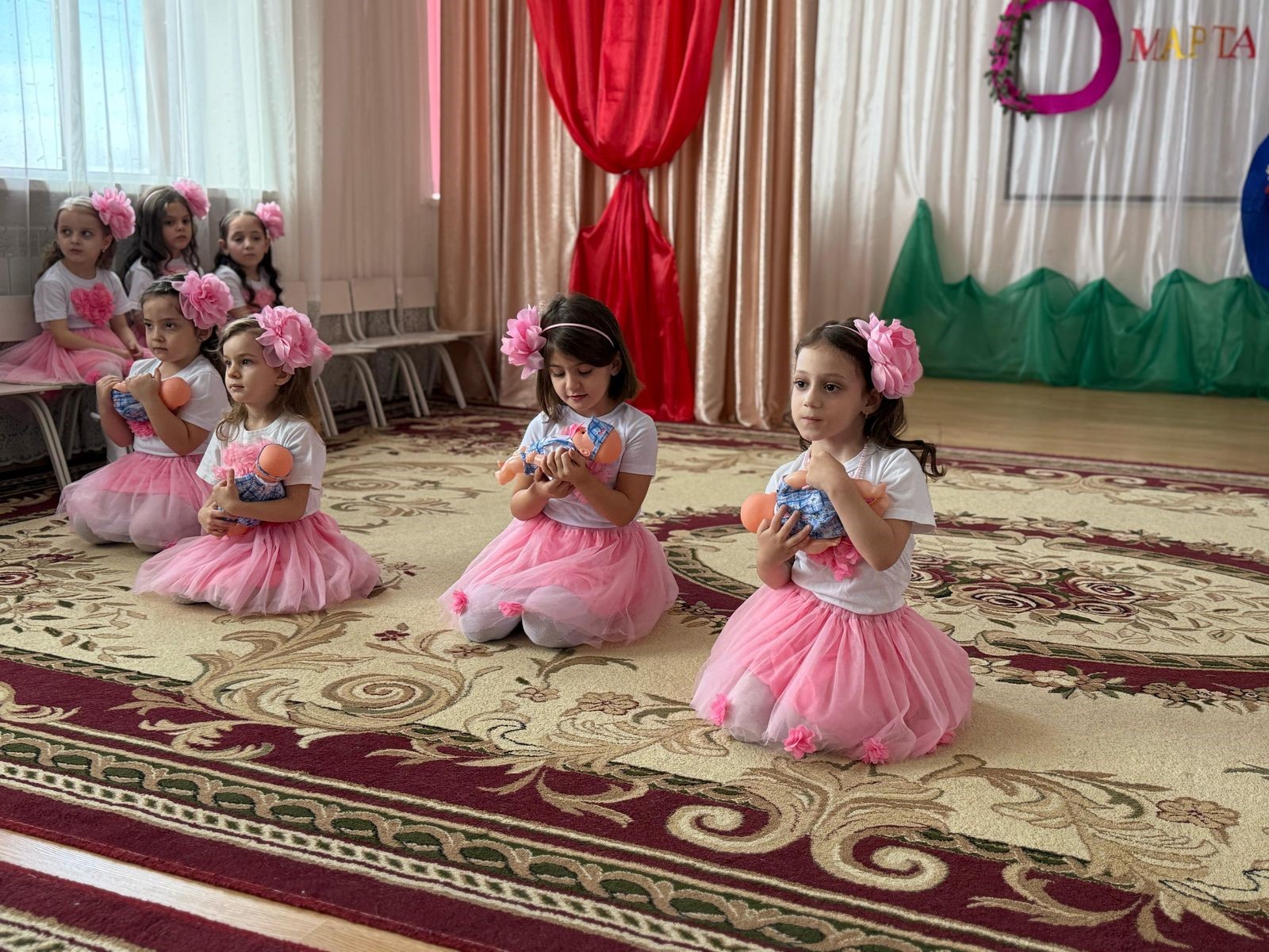 Преддверие праздничных утренников во всех возрастных группах ДОУ воспитателями проводились тематические беседы с детьми, о том как они помогают мамам и бабушкам, а сколько они их любят, как ласково х мамы и бабушки называют, чему учат и т.д., (на русском и чеченском языках), чтение художественной литературы, сказок («Волк и семеро козлят», А. М. Горький «Сказка о глупом мышонке», С. Прокофьеф «Как зайчонок обидел свою маму» и др.) просмотр тематических сказок и мультфильмов («Сестрица Аленушка и братец Иванушка», «Мама для мамонтенка», «Гордая семья» др.)